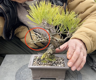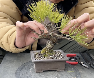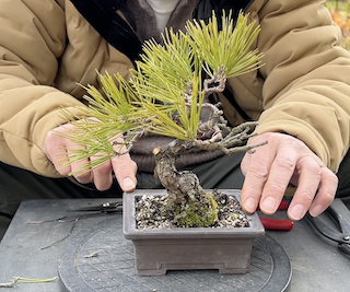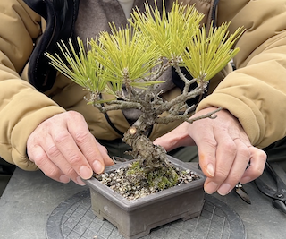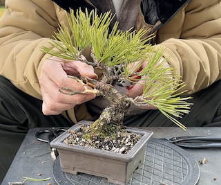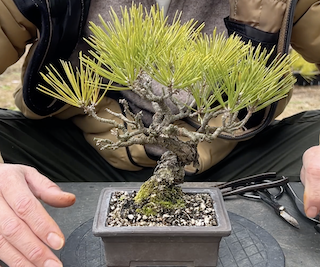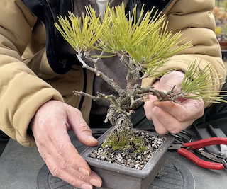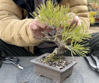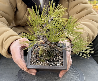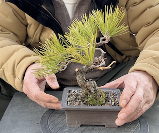毎週日曜日に開催される盆栽の競市で3年前に購入した黒松の盆栽です。